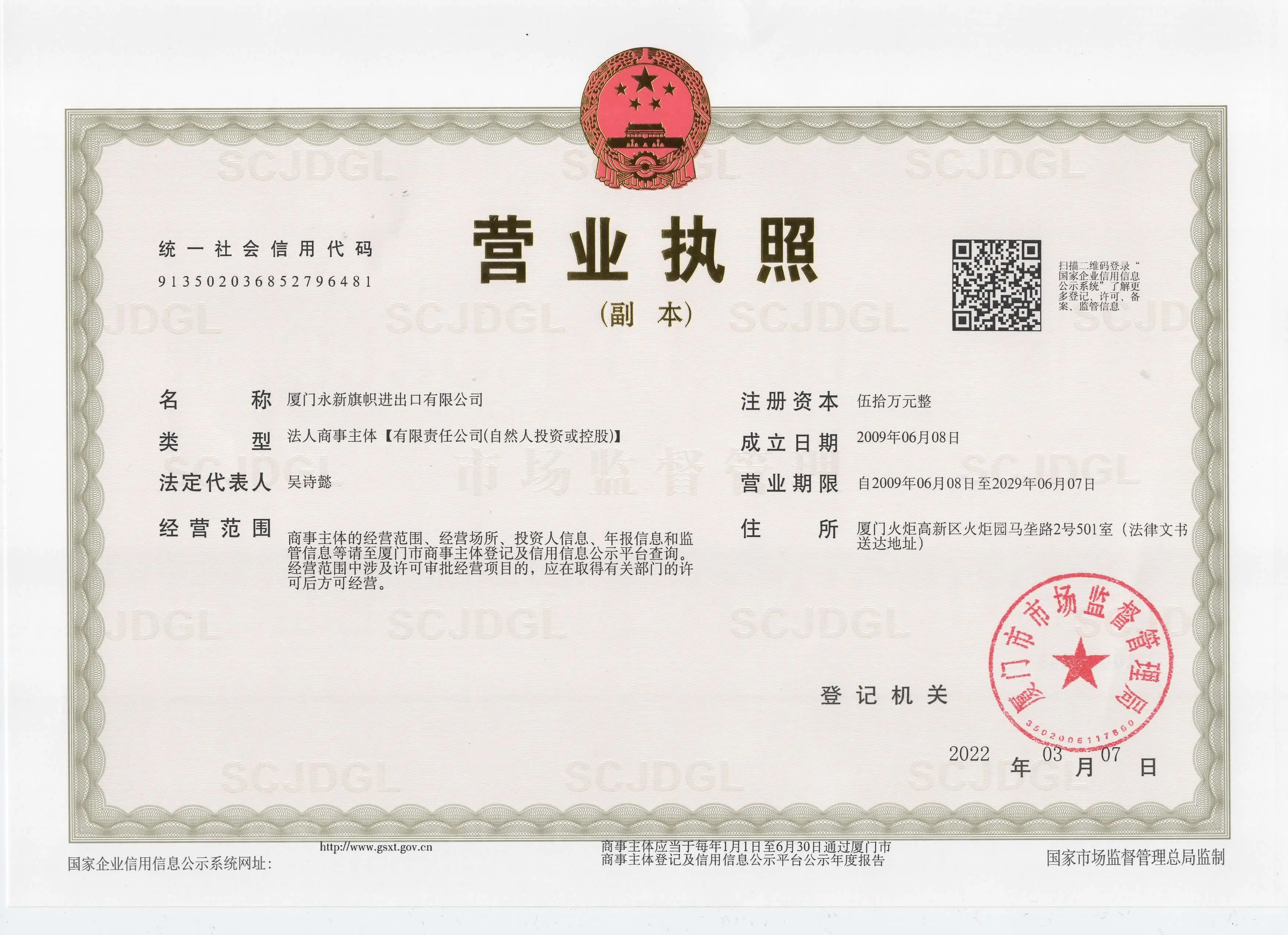 Registered address : Room 501, No. 2 Malong Road, Torch Garden, Xiamen Torch High Tech Zone Xiamen Fujian China